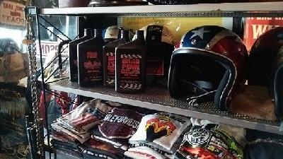 そして2階の店舗は、これまた雰囲気のある店内にカッコいいビンテージのヘルメットやレザージャケット等、ハーレー乗りやそれ以外のライダーにも最高の