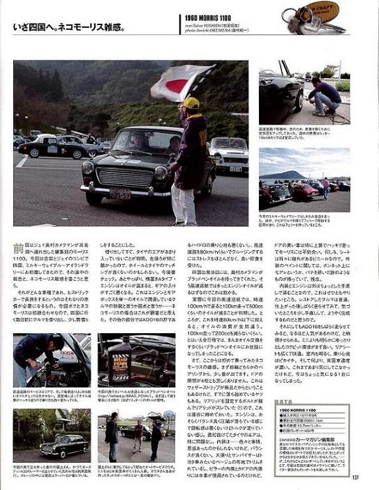 CAR magazine No.405 BRAD PENNがカー・マガジン3月号に掲載されました。 今回は1960MORRIS1100で、四国までのイベント参加で、ブラッドペンを愛用 頂いている内容が記事に成っています。 過酷なレース使用でも良い結果をお聞きしましたが、今回のようなロングドライブでも良い感想をお聞きすると嬉しいですね! 先週書店にて販売されましたので、是非ご覧下さい!